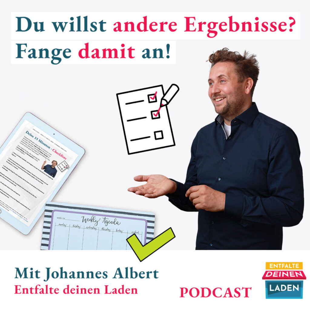 Episode #116 ENTFALTE DEINEN LADEN PODCAST mit Johannes AlbertDu willst konkrete Ideen für mehr Sichtbarkeit, die sich trotz vollem Ladenalltag umsetzen lassen? Hol die 15 Minuten Power Checkliste: https://entfaltedeinenladen.de/15minutenpower/ Kennst du auch die Aufgaben, um die man sich „eigentlich mal kümmern“ müsste? Also nicht die typischen Alltags-To Dos, sondern die Aufgaben, die deinen Laden tatsächlich […]