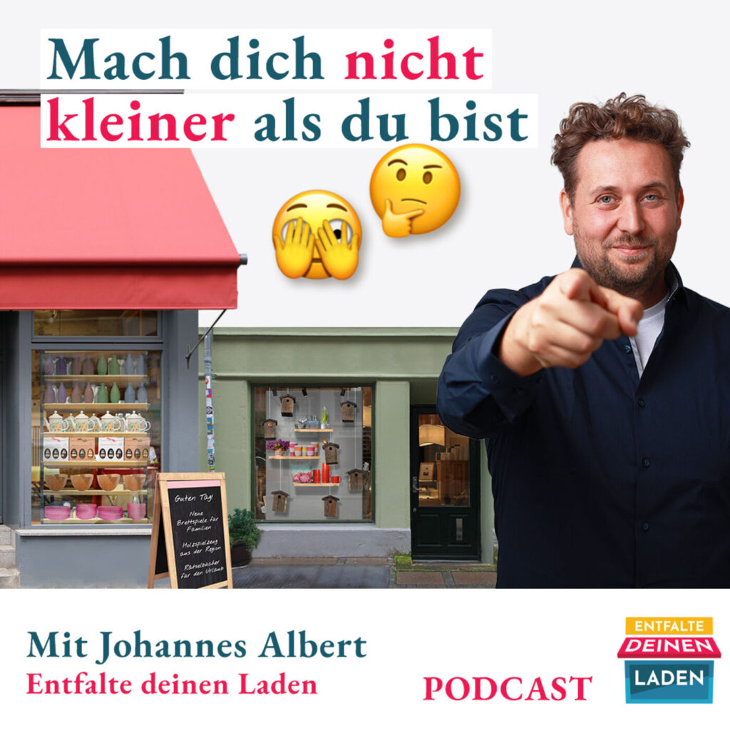 #120 Entfalte deinen Laden Podcast mit Johannes Albert Du willst deinen Laden regelmäßig voranbringen und aktuelle Inspirationen, die JETZT wichtig sind? Hier erfährst du mehr: https://entfaltedeinenladen.de/club/ Mach dich nicht kleiner als du bist Ertappst du dich auch manchmal dabei, dass du denkst, bestimmte Dinge nicht richtig zu können oder dass du hier und da nicht […]